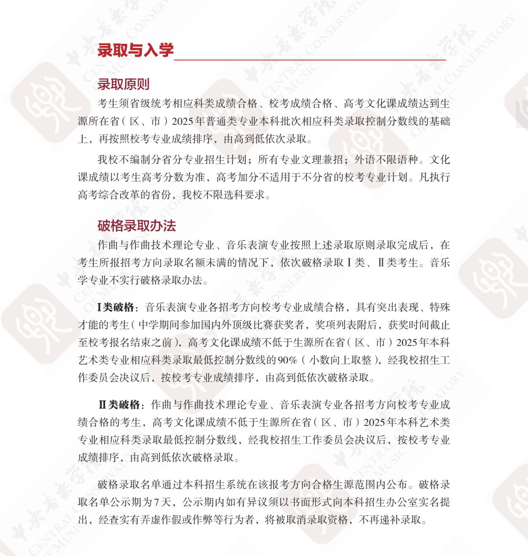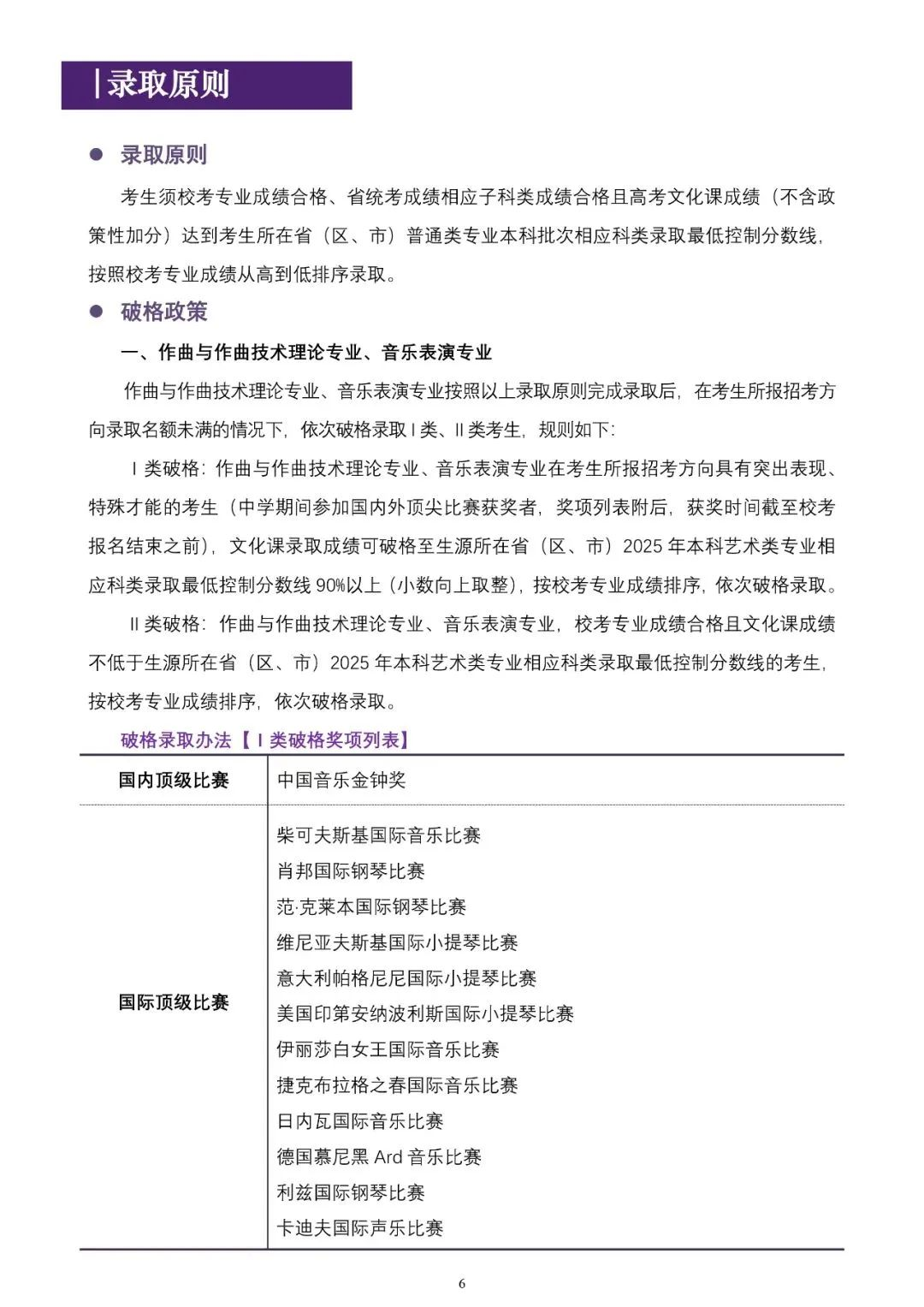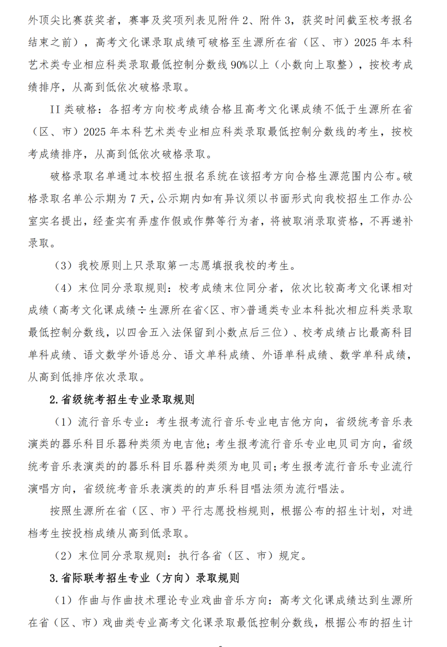 ② 音樂類的破格錄取分為I類和II類,先者需要獲得金鐘獎等賽事獎項,有相應(yīng)的證書,才有資格破格錄取,后者則是按照校考排名,文化分過藝術(shù)類線,從高到低破格錄取,直至招滿。