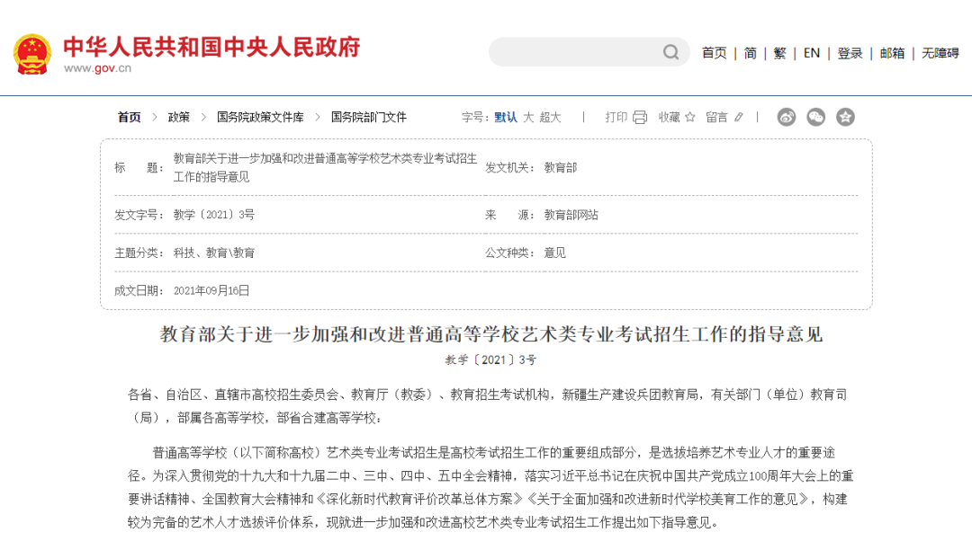 來(lái)源:教育部關(guān)于進(jìn)一步加強(qiáng)和改進(jìn)普通高等學(xué)校藝術(shù)類專業(yè)考試招生工作的指導(dǎo)意見(jiàn)