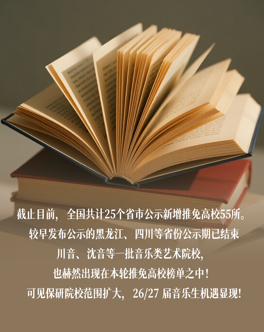 免責(zé)聲明: 《25年擬增66所保研校!沈音、川音在列,10余所音樂類院校上榜》 文章內(nèi)容來源網(wǎng)絡(luò)整理僅供參考,若有來源標(biāo)注錯誤或侵犯了您的合法權(quán)益,請與我們聯(lián)系, 我們將及時更正、刪除或依法處理。(QQ:2446111314)