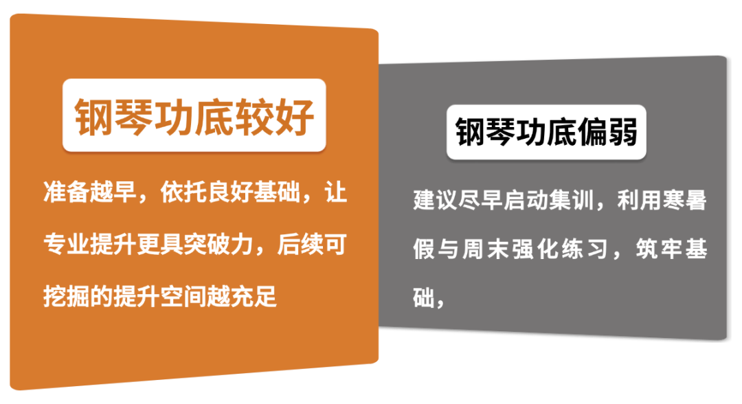 核心原因:很多考生因 “集訓時間短、基礎沒打好” 導致失利。鋼琴演奏需要較好功底的基礎上還需要長期打磨技巧與曲目,尤其高階曲目(如巴赫平均律、肖邦練習曲等不同類型和風格類型的曲子)需要系統(tǒng)訓練。